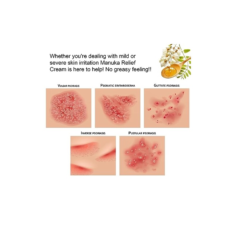 - All-natural organic ingredients: Our Organic Manuka Relief cream contains all-natural organic ingredients that are gentle on the skin. We use only the highest quality ingredients to provide relief from dry, itchy skin, and other skin conditions, Is all-natural, vegan, non-GMO, cruelty-free, and paraben-free, These ingredients are carefully selected to ensure their effectiveness in promoting healthy, happy skin.