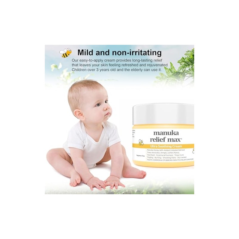 - Formula containing Manuka Honey: This is a natural humectant that helps to keep the skin moisturized and promote healing, This Manuka Honey Relief cream is made with Manuka Honey, Colloidal Oatmeal, and Arnica Montana Flower Extract to provide soothing and relief. The quick-absorbing formula deeply moisturizes the skin, leaving it feeling soft and hydrated.