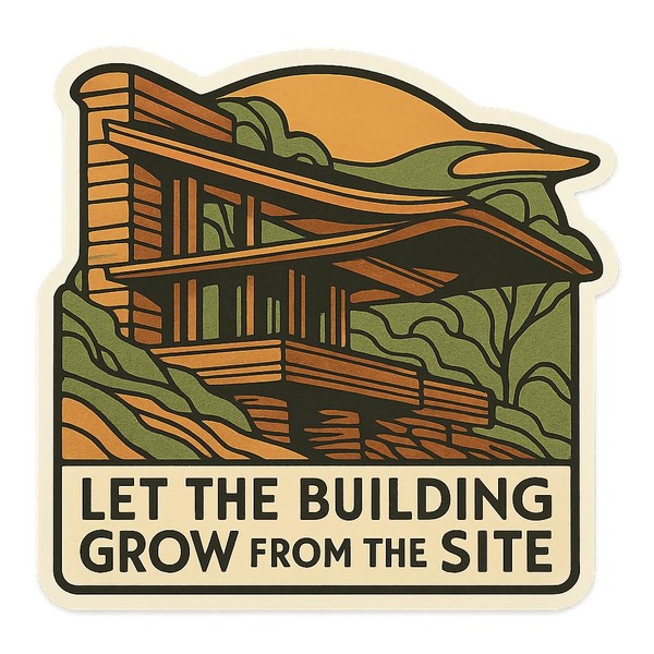 Organic Modern Frank Lloyd Wright Style Architectural Sticker (3" x 3")