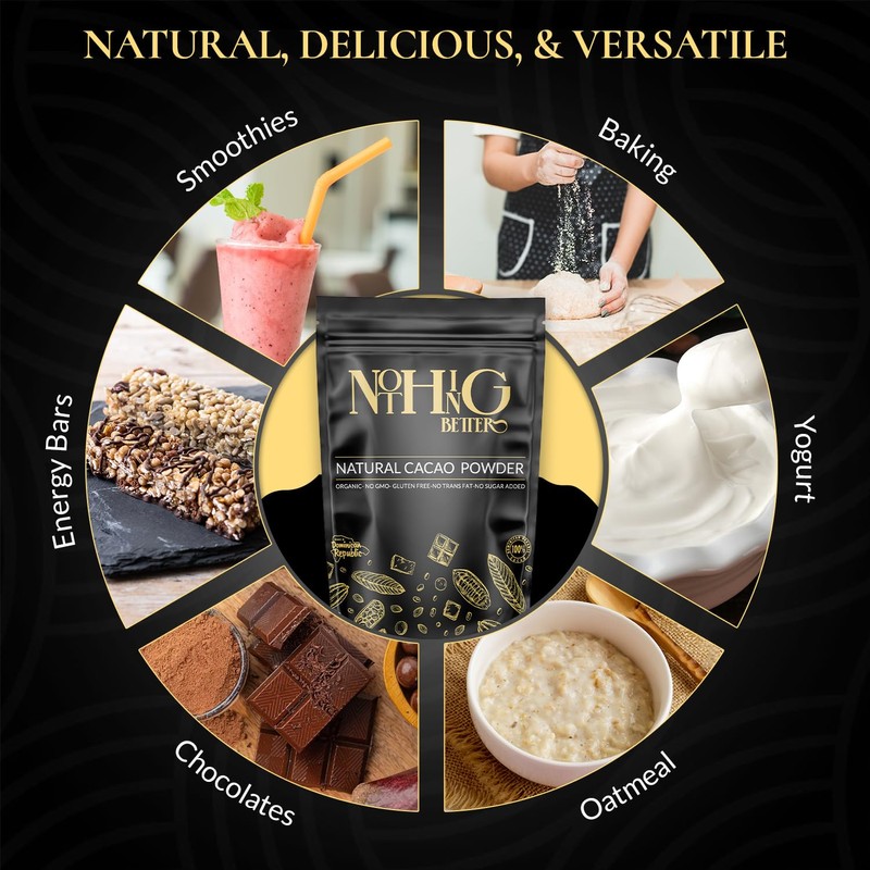 - 4. 🍫 Delicious in Smoothies, Baking, Coffee & More: This natural cocoa powder delivers robust chocolate flavor with a smooth texture. Use it in energy bars, chocolate sauces, oatmeal, or homemade brownies. Great for smoothies, lattes, or cold brews too. Its versatile nature and deep color make it a standout ingredient for both sweet and savory dishes. Perfect for everyday kitchen creativity with superfood cacao.