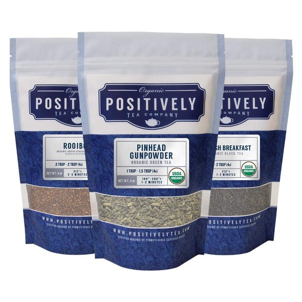 Organic Positively Tea Company, Tea Variety Sampler, Loose Leaf, 4 Ounce, 3 Pack