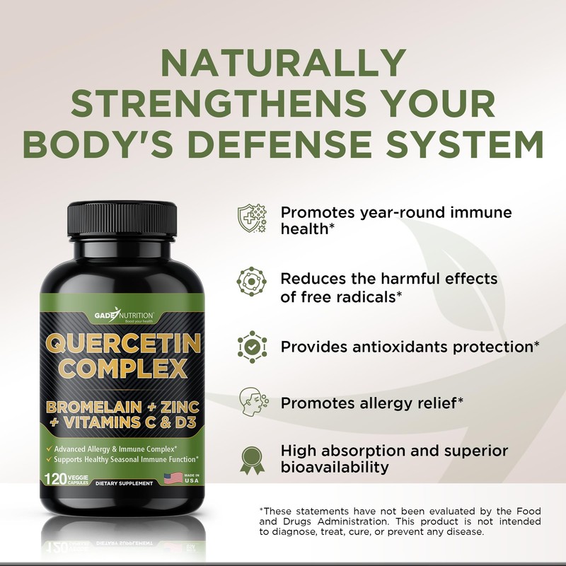 Organic quercetin, Quercetin with Bromelain, quercetin supplements 500mg, quercetin with vitamin c and zinc, Bioflavonoids for Healthy Immune Support, vitamin d3, zinc quercetin, Third Party Tested.