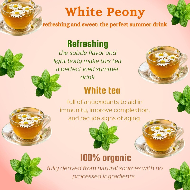 - Rejuvenating Blend: This white peony tea offers a refreshing, floral taste to uplift your senses and provide a moment of tranquility.