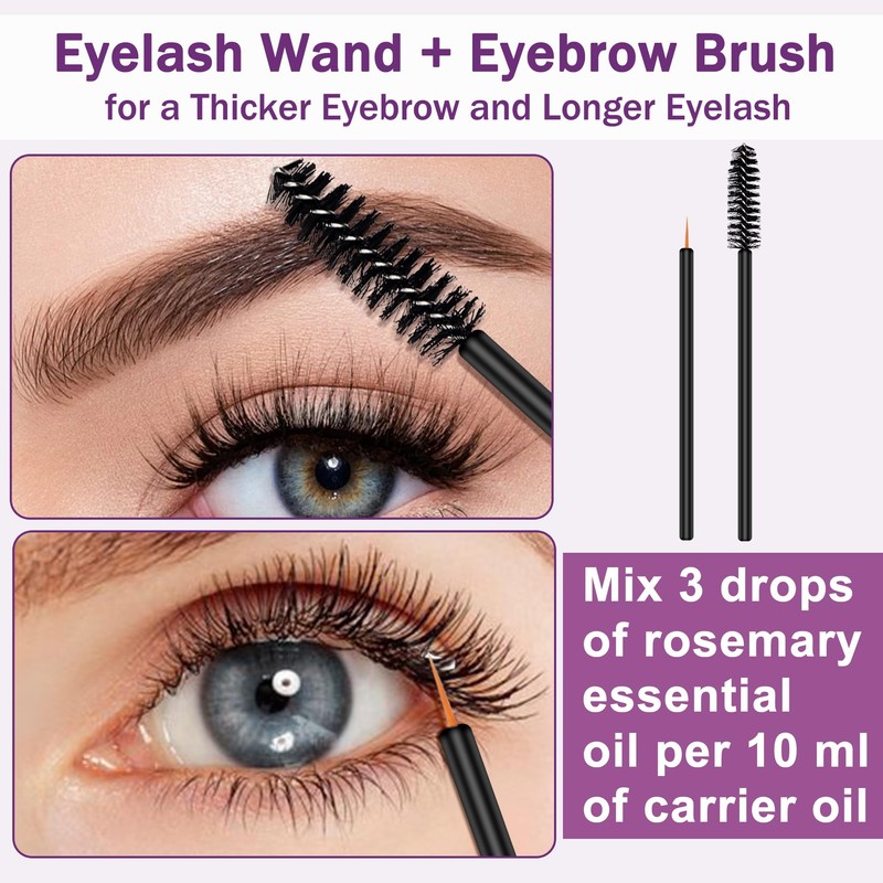 - EXTRA DROPPER,DROPPER CAP AND EYELASH & EYEBROW BRUSH – Our 100 percent pure rosemary oil is stored in an amber glass bottle to remain fresh and effective for a longer period.The package comes with both glass dropperd and dropper cap, so you get the exact amount of oil without any waste.Extra eyelash wand and eyebrow brush would help you to grow thicker and longer eyelash and eyebrow without extra pay.Small and portable,could easily fit in a makeup bag.The Best Value Kit for Your Hair Growth Purpose