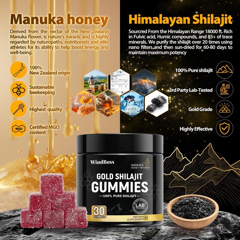 EXPERIENCE A DIFFERENT TASTE: Our healthy gold Himalayan shilajit gummies paired with grade manuka honey from the southern hemisphere allow you to experience the benefits of gold-grade, pure shilajit resin while reducing fatigue, enjoy a better overall quality of life. Let's you experience the benefits of gold grade pure shilajit resin and enjoy a better overall quality of life.
