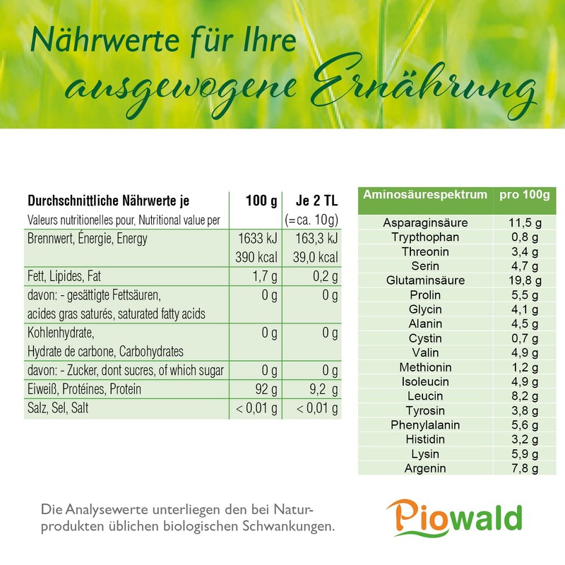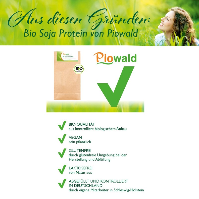 - Piowald quality - organic soy protein 92% - isolate is obtained from organic soybeans.