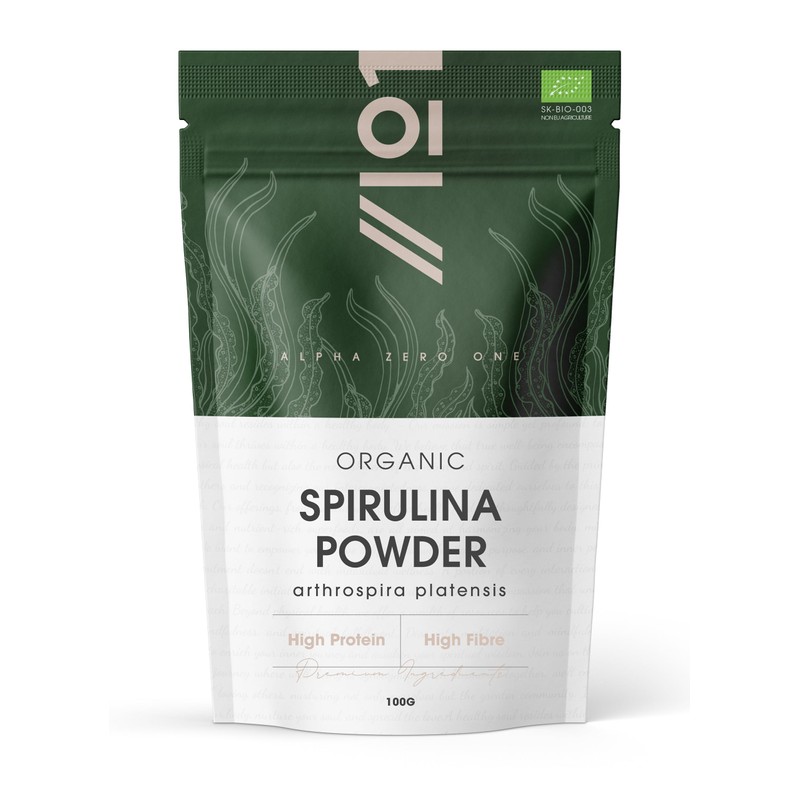 Organic Spirulina Powder 100g – 100% Cold Pressed – Resealable and Recyclable Pouch – by Alpha01