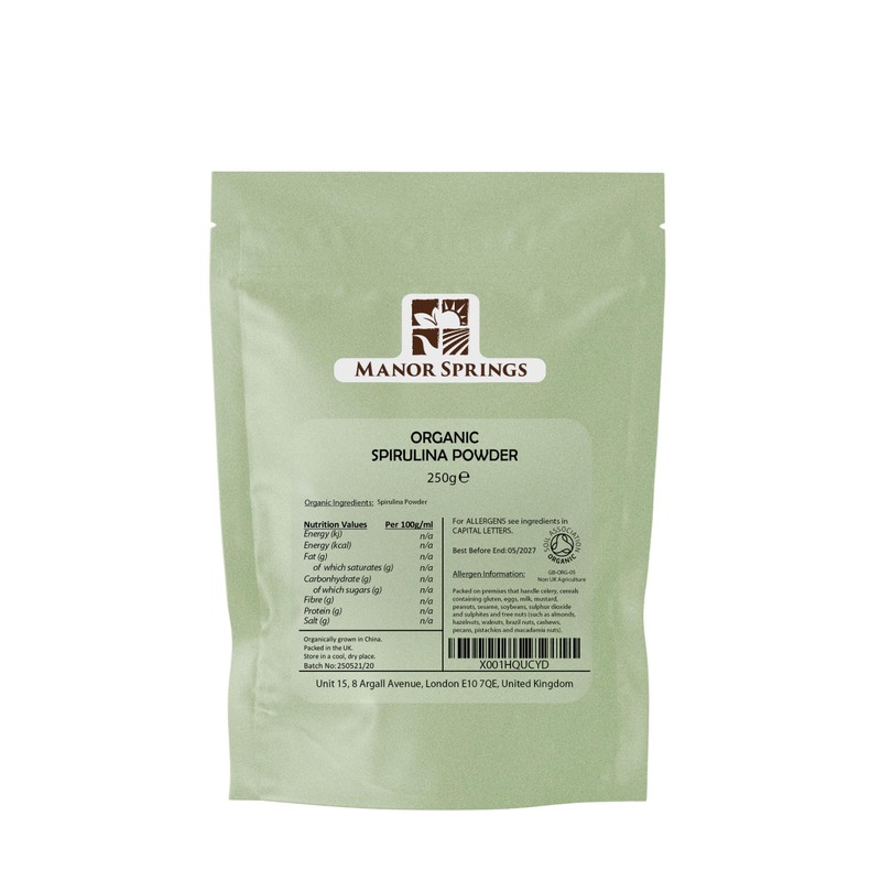 - Manor Springs Organic Spirulina Powder is superior quality and contains just the best 100% pure spirulina nutritive ingredient.