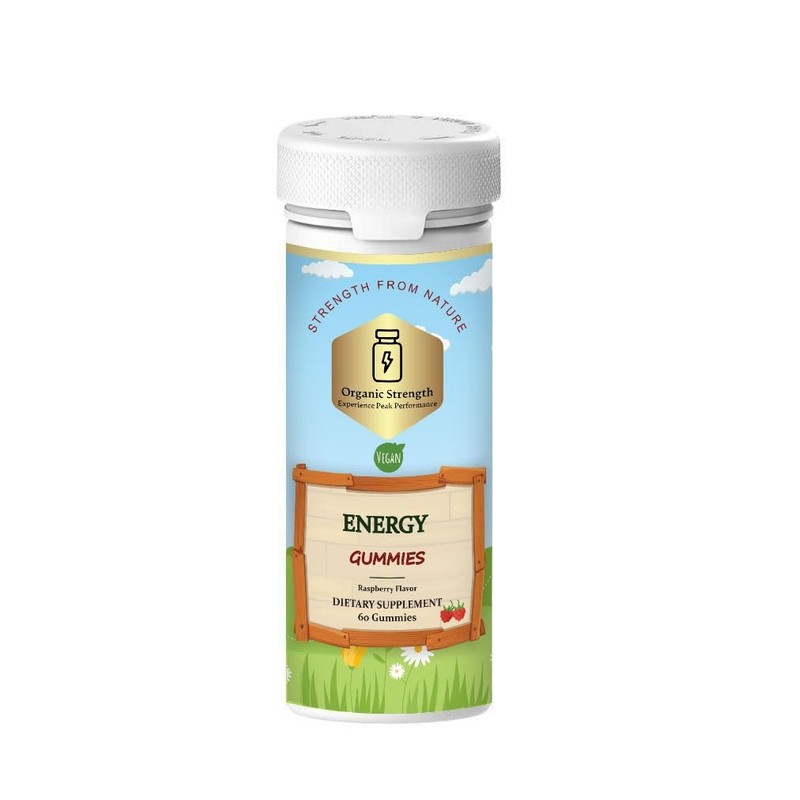 Organic Strength Vegan Energy Gummies: Ignite Your Day with Natural Vitality with 100mcg of Vitamin B12 (60 Count)