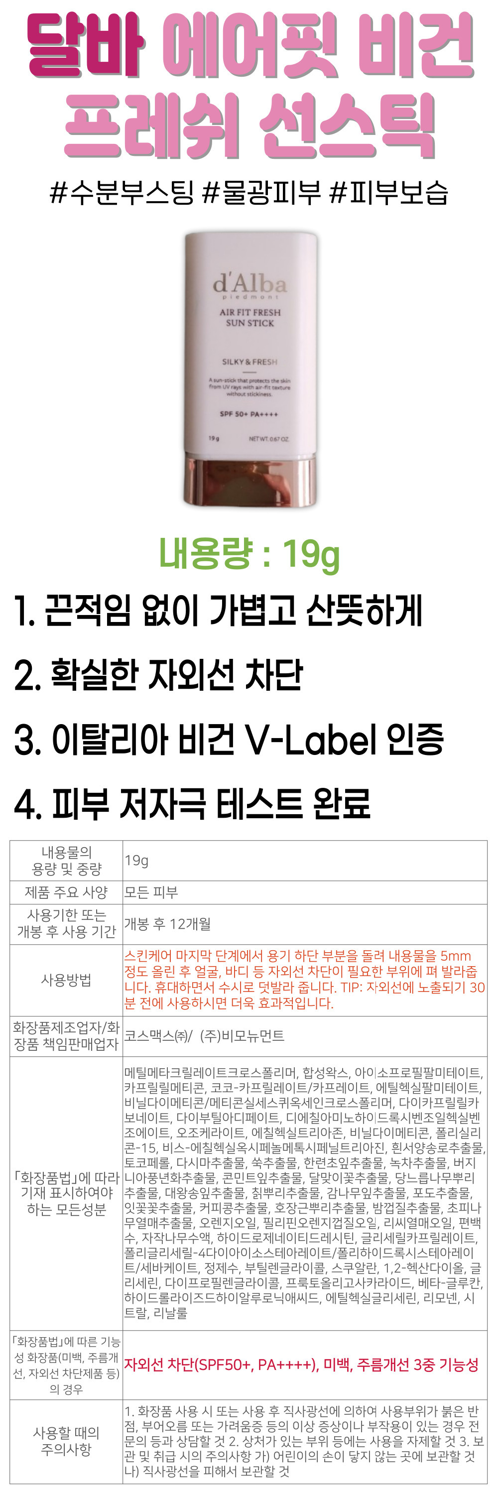 유기자차선크림 달바 에어핏 저자극 선스틱 비건인증 피부 관리 기미 잡티 미백 주름 스킨 케어 비건 선 크