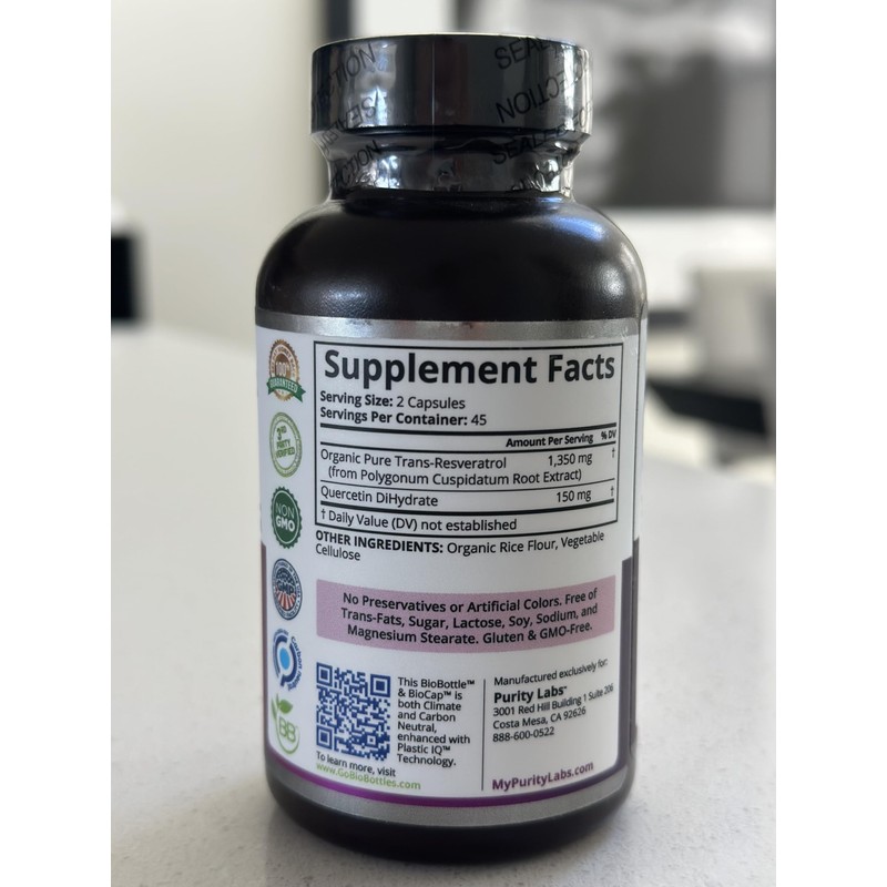 - ADVANCED ANTIOXIDANT - Purity Lab’s high potency supplement is packed with concentrated Trans-Resveratrol for powerful cardiovascular support. Enhanced with Quercetin, this supplement provides maximum antioxidant benefits.