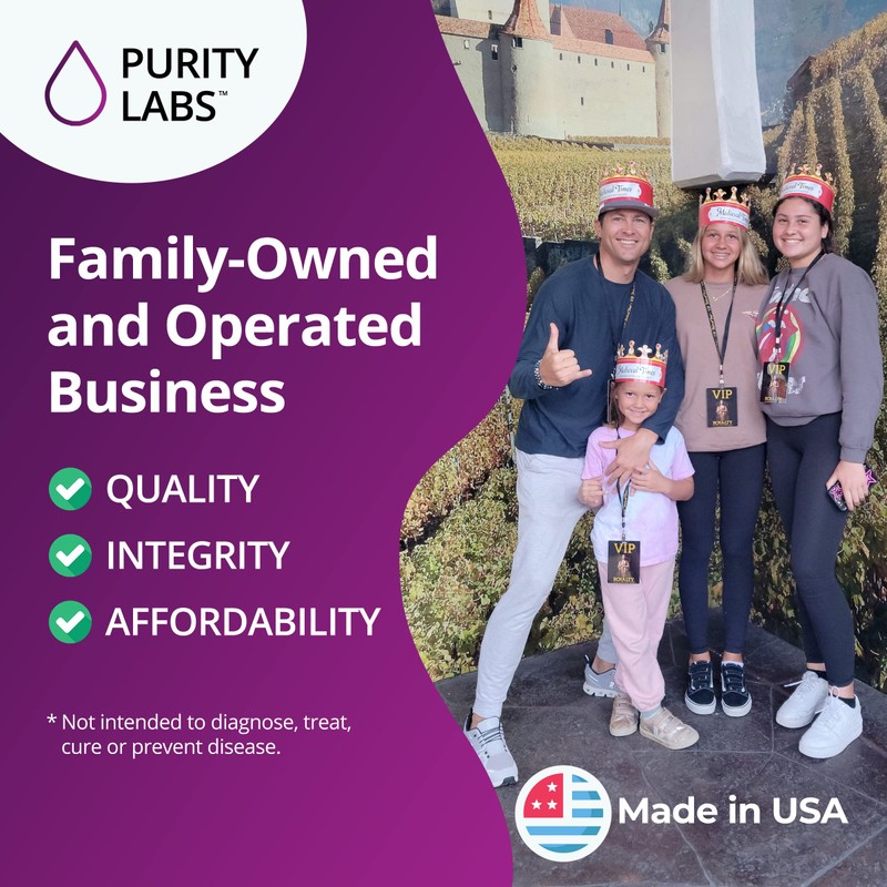 - FAMILY-OWNED - Purity Labs creates healthy supplements that do what they say and contain exactly what's on the label. Manufactured in the USA, our integrity is reflected in our high number of repeat customers. We never sacrifice quality for the bottom line.