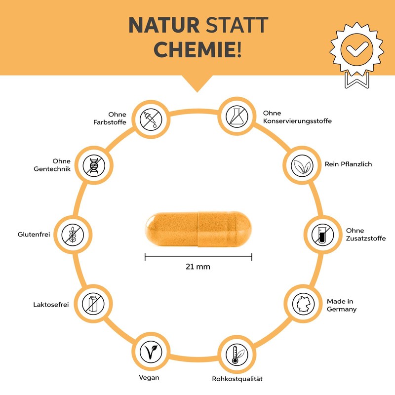 - No additives - Pure turmeric powder encapsulated without additives. Free from magnesium stearate, flavours, colours and fillers, stabilisers and without preservatives. In addition, lactose-free, gluten-free and GMO-free.