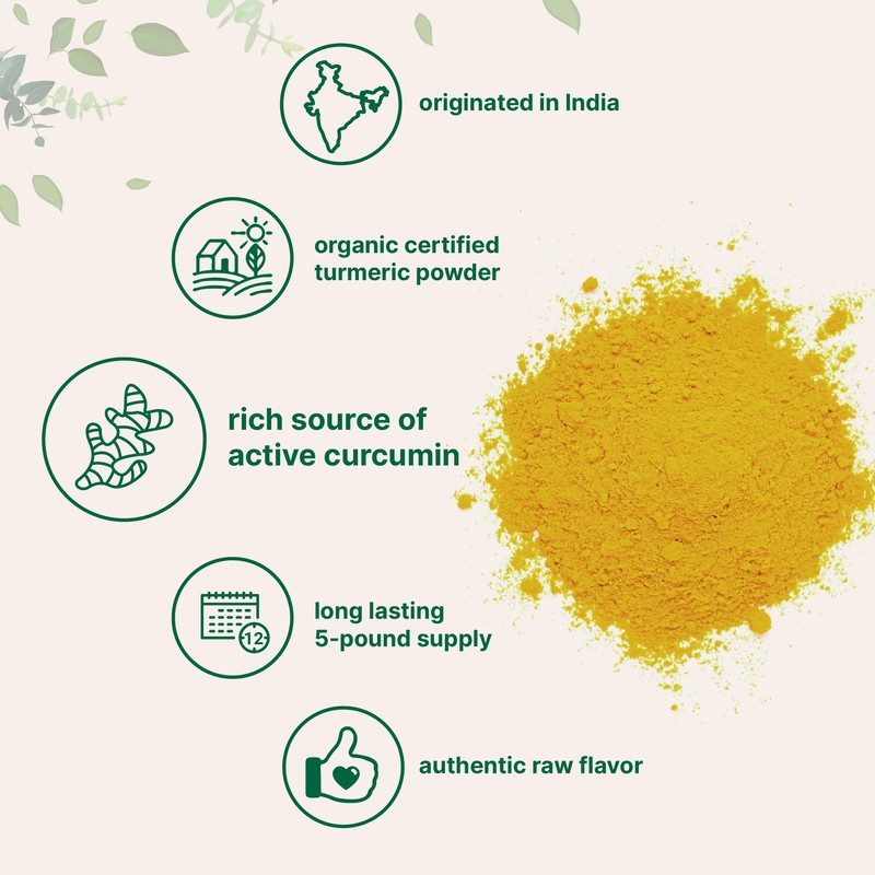 Organic Turmeric Powder, 5 Pounds | Rich in Active Curcumin | Pure Turmeric Supplement | Antioxidant Support for Joint & Immune Health | Non-GMO, Vegan Friendly, India Origin