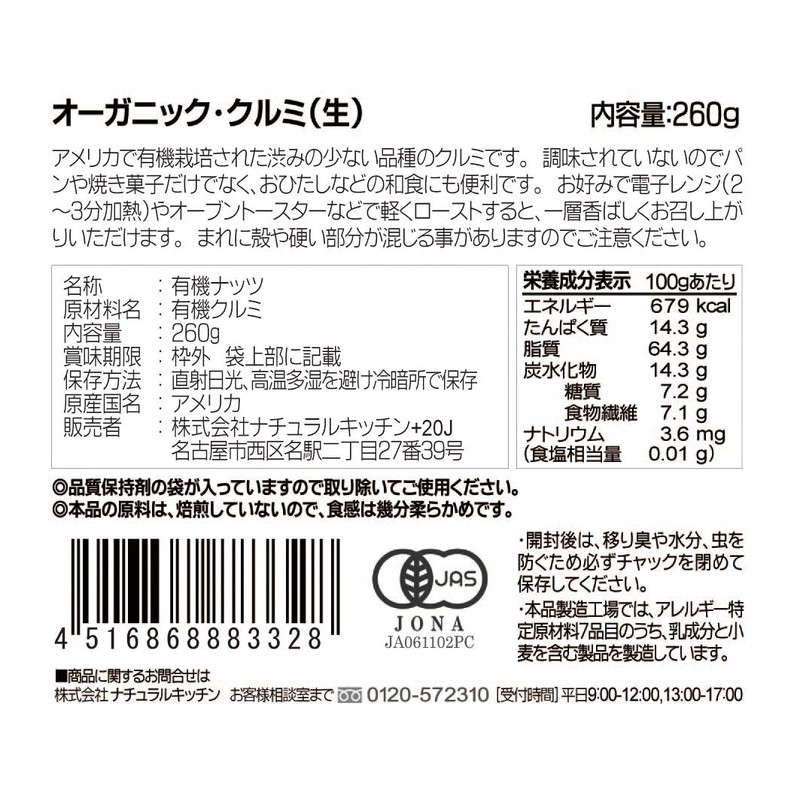 Organic Walnut Raw 9.1 oz (260 g) 3328