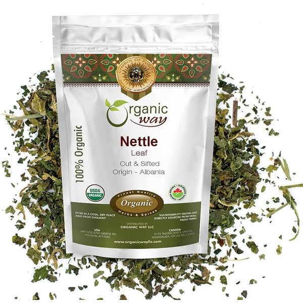 Organic Way Stinging Nettle Leaf | Herbal Tea (Urtica dioica) Cut & Sifted - European Wild-Harvest | Organic & Kosher Certified | Vegan, Non GMO & Gluten Free | Origin - Albania, (16 Oz)