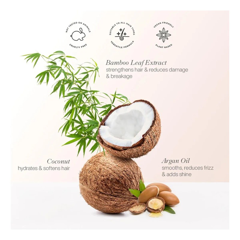 CHAMPÚ DE COCO. Nuestro champú Super Naturals Moisture Boost abarca las propiedades hidratantes del coco. No solo suaviza el cabello, sino que también proporciona nutrición, lo que lo convierte en un champú ideal para cabello seco y deshidratado.; CHAMPÚ HIDRATANTE. Este champú para cabello dañado nutre e hidrata profundamente el cabello, restaurando la salud del cabello seco y encrespado. El extracto de hoja de bambú presente fortalece el cabello y reduce la rotura.; CHAMPÚ DE VITAMINA E. Enriquecido con vitamina E, este champú revitalizante hidrata profundamente el cabello, mejora su salud general y reduce el encrespamiento mientras agrega brillo, gracias a la inclusión de aceite de argán.; CHAMPÚ VEGANO. Formulado con una mezcla enriquecedora de vitamina E y complejo de aminoácidos, este champú vegano limpia suavemente, revitaliza el cabello opaco y fortalece el cuero cabelludo para promover un crecimiento saludable del cabello.; Champú sin crueldad. Nuestro champú para cabello encrespado no solo es nutritivo sino también libre de crueldad. Está libre de fragancias sintéticas, por lo que es un champú natural que hace espuma eficazmente a través de ingredientes derivados naturalmente. Presentamos el champú Organic Works Super Naturals Moisture Boost, una solución suave, nutritiva e hidratante para todo tipo de cabello. Este champú natural ha sido cuidadosamente elaborado para limpiar suavemente tu cabello mientras restaura e hidrata profundamente las hebras secas o encrespadas. Fortalece el cuero del cabello para proporcionar una base sólida para el crecimiento del cabello, reduciendo así significativamente la rotura. El champú se enjabona eficazmente a través de ingredientes de origen natural, asegurando una limpieza suave y completa cada vez.