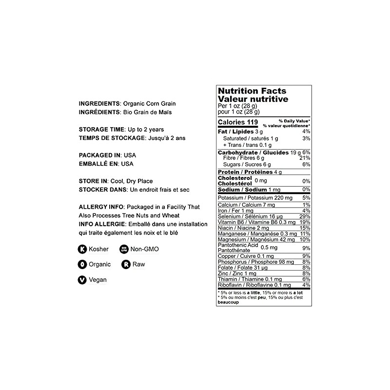 Organic Yellow Whole Corn, 1.5 Pounds - Non-GMO Maize, Cleaned and Dried Kernels, Vegan, Kosher, Bulk Cereal Grain, Good Source of B vitamins, Thiamin, and Folate