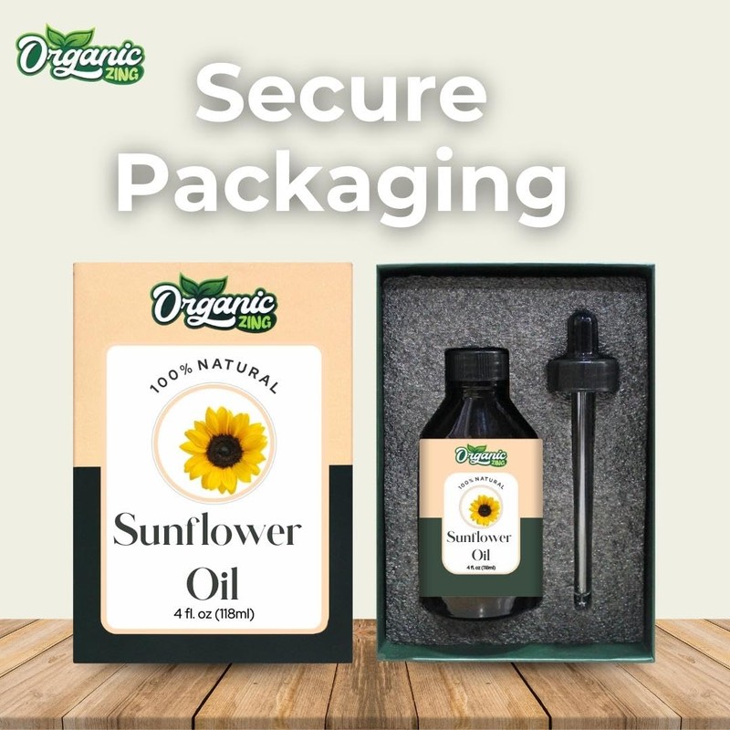 Organic Zing Sunflower (Helianthus) Oil | Pure & Natural Carrier Oil for Skincare, Haircare, Massage - 118ml/3.99fl oz