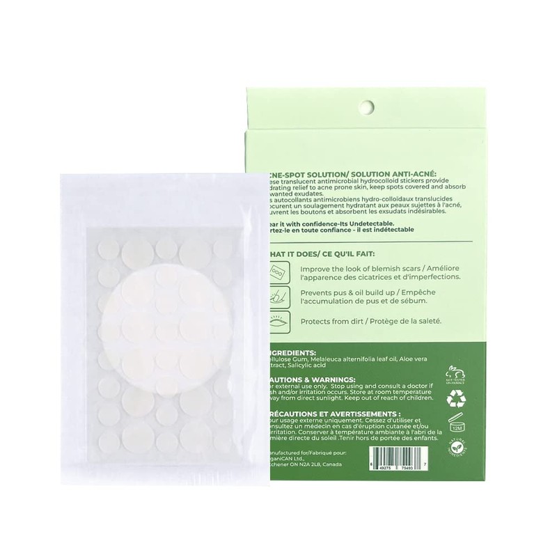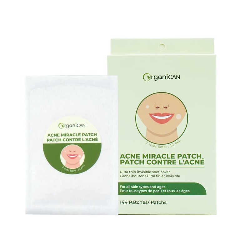 OrganiCAN Acne Hydrocolloid Patch with Tea Tree Oil for Face - 144 count, 2 size Dots (Small, Large) Ultra Thin, Invisible, Absorbing Spot Cover for Zits, Pimples