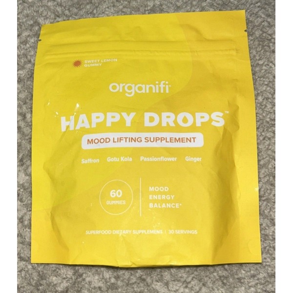 Organifi Happy Drops Mood Lifting Supplement - 60 Gummies - Sealed - EXP: 1/26.
