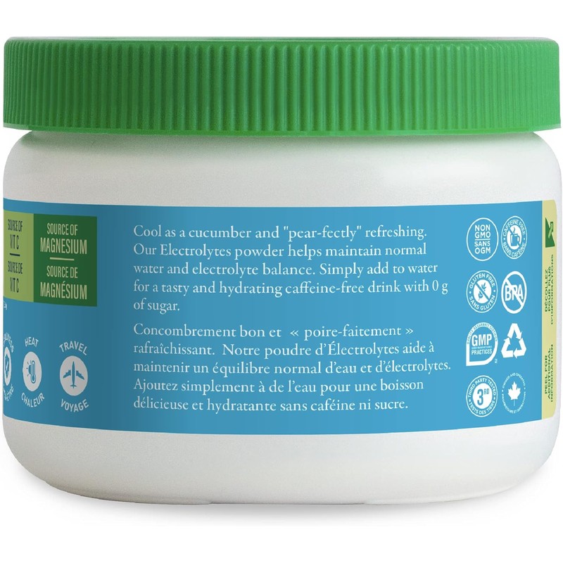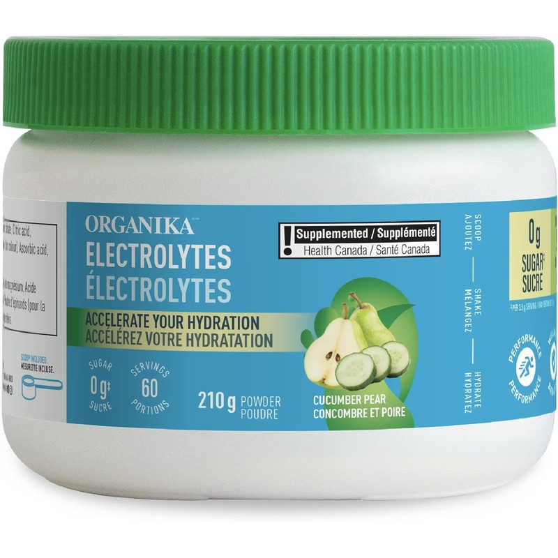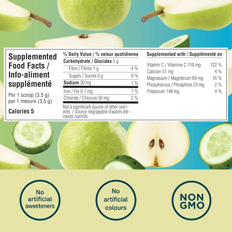 Organika Canadian-Made Electrolytes Powder - Cucumber Pear - Sugar-Free Hydration and Electrolyte Replenishment with Prebiotics and Vitamin C - 210g - 60 servings