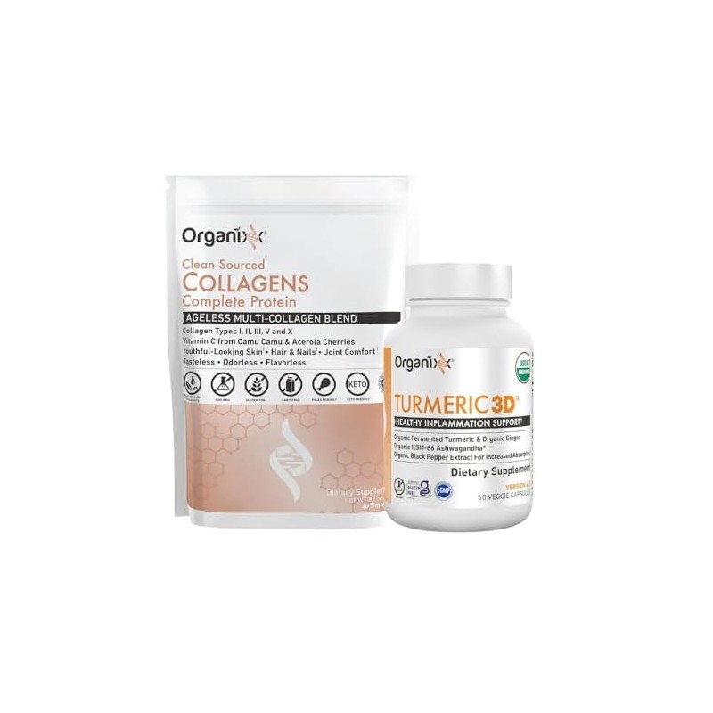 Organixx Collagen Peptides Powder (30 Servings) & Turmeric Curcumin (60 Caps) Bundle