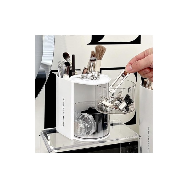 Organizador de maquillaje, vitrinas de cosméticos, Vitrinas Cosméticas de Acrílico Transparente, Organizador Giratorio Ajustable, caja de almacenamiento de maquillaje (B, 1PCS)