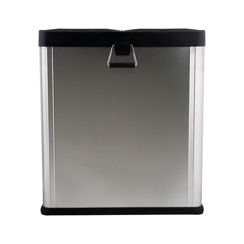 - Side-by-side double compartment recycle bin; 16-gallon capacity
