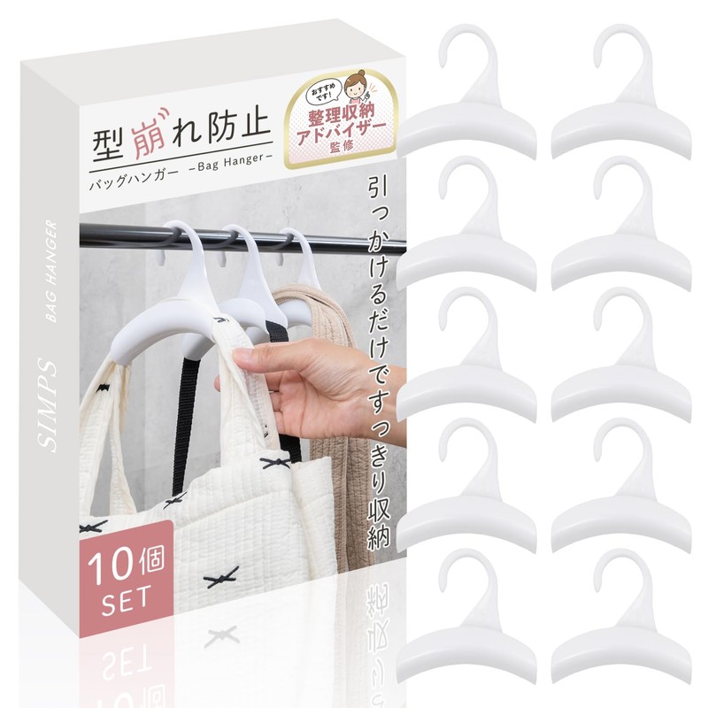 Organizer Storage Advisor: Bag Hangers (10 Pieces) Shape Prevention x Storage for Shoulder and Handbags (White, One Size)