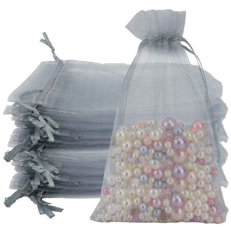 Organza Bags 4x6,50Pcs Sheer Mesh Bags Drawstring,Small Mesh Gift Bags,Drawstring Gift Bags, Wedding Favor Bags, Candy Bags Pouches for Party, Birthday,Festival,Soaps, Makeup, Wrapping Supplies,Gray