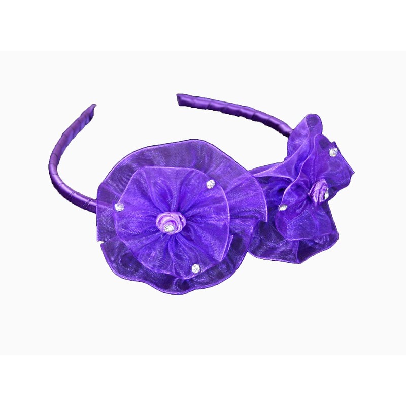 Organza Flower Bow & Rhinestone Headband (Purple)