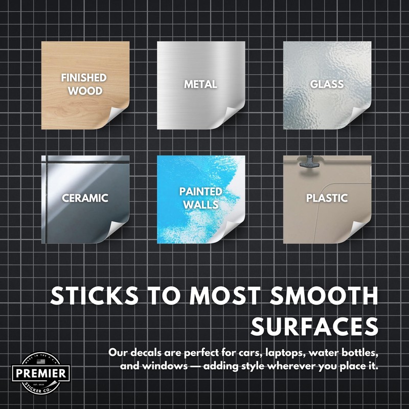 Give your vehicle a fresh look with our premium vinyl decals, proudly made in the U.S.A. Engineered for long-lasting durability, these decals hold up for over five years in outdoor conditions, making them perfect for car windows, laptops, and more. Each decal includes easy-to-follow installation instructions and a prep wipe for a hassle-free application. At Premier Sticker Co., we specialize in high-quality designs that add personality and style to any surface. Whether it’s funny, trendy, or aesthetic decals, we have something for everyone.