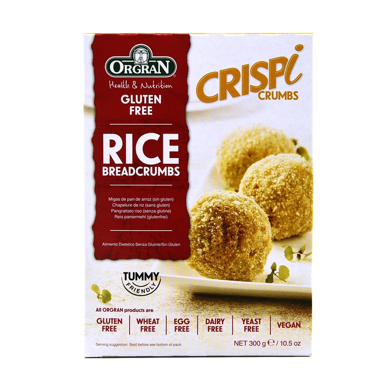 • ORGRAN Crispi Rice Breadcrumbs is a quality product ideal for use in all crumbing applications of meats, fish or vegetables. Its versatile use combined with its crunchy texture will make it a kitchen favourite in no time.