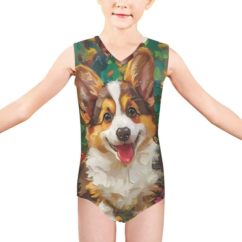 ORGYPET Fashion Dog Toddler Girl Summer Swimsuit 11-12t Funny One Piece Bathing Suit for Party V Neck Girls Swimsuit for Swim Competiton Breathable Swimwear for Hawaii Gift for Her