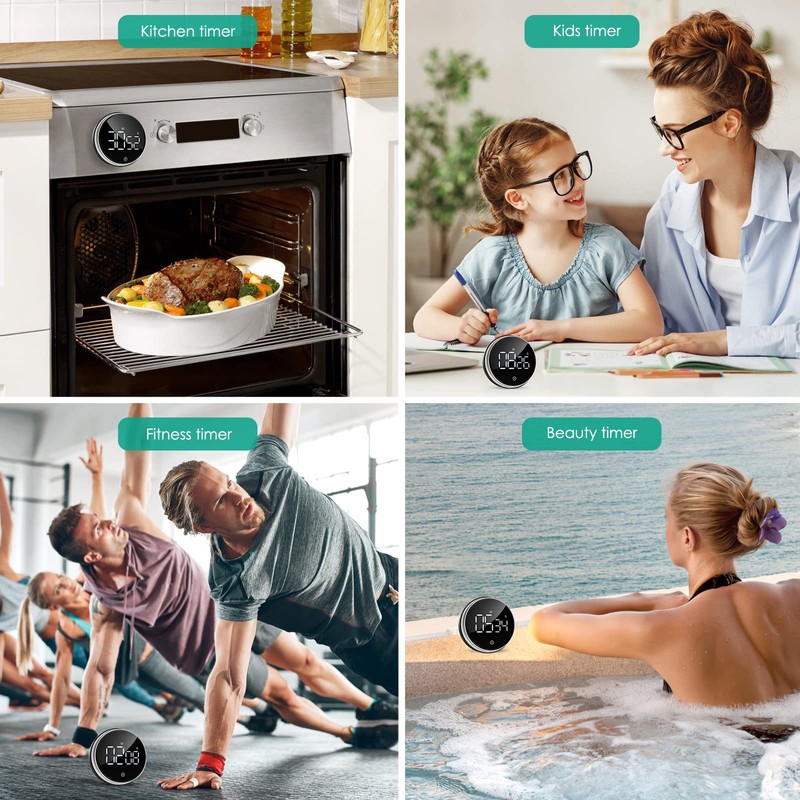 • WIDE RANGE OF USE:New generation of digital rotor timer, whether it is kitchen cooking timer or work and study, and sports fitness/yoga, beauty, games, etc., can help you accurately calculate, effectively manage time