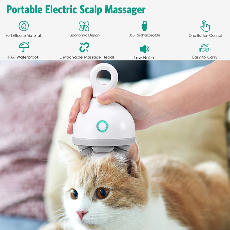 - WATERPROOF & TYPE-C:The handheld head massager is made of IPX-6 waterproof material, allowing your pet to enjoy massage while taking a bath. The Type-C charging port has a waterproof and dustproof plug, making it safe to use
