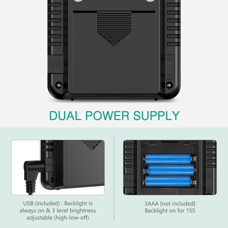 - Battery Powered with Backlight: The main unit is powered by 3 AAA batteries (not included), while each sensor requires 2 AAA batteries (also not included). For added convenience, the main unit can also be powered via a USB cable (included), allowing for 2 brightness-adjustable backlight settings for optimal visibility in a variety of lighting conditions