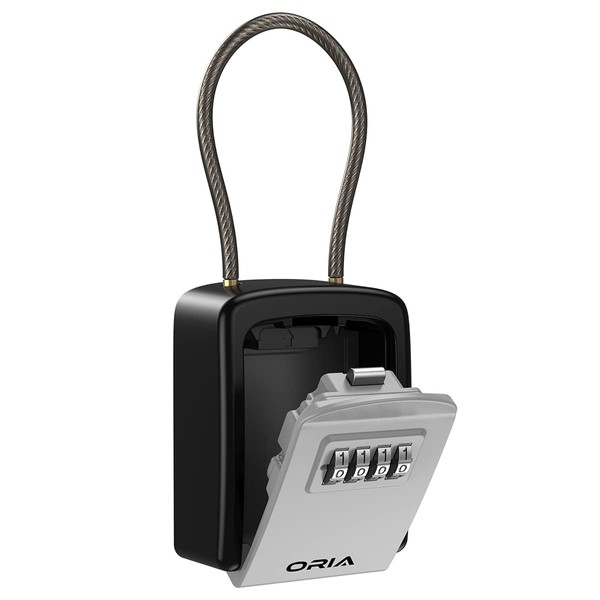 ORIA Key Lock Box, 4 Digit Combination Lock Box Key Safe Box, 5 Keys Capacity with Removable Chain for Indoor Outdoor Use