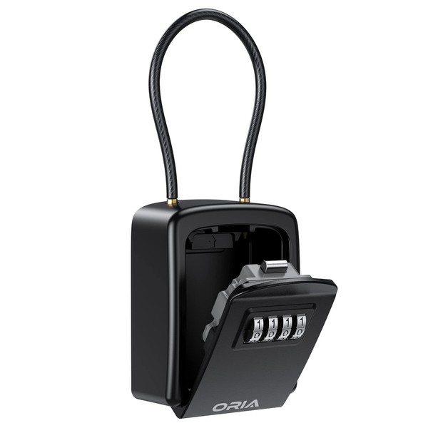 ORIA Key Lock Box, 4 Digit Combination Lock Box, Key Safe Box with Removable Chain for Indoor Outdoor Use, Black