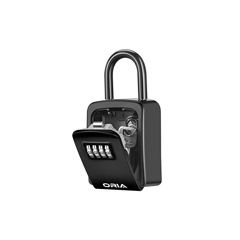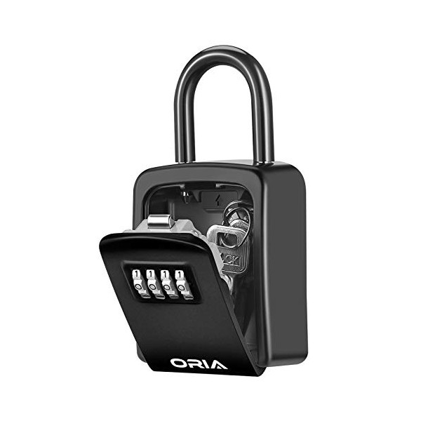 ORIA Key Lock Box, Wall Mounted Key Safe Box, 4 Digit Combination Key Storage Lock Box, 5 Keys Capacity with Removable Shackle for Indoor Outdoor, Black