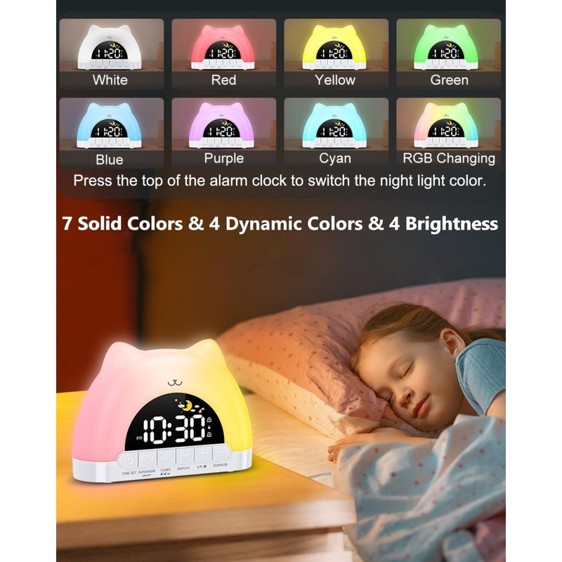 - Multi-function & Super Practical: The children's ambient light clock also supports 12/24H format switching, can be set to night mode, and the built-in USB output port can also be used as a charging station for other small electronic devices. These designs make it a comprehensive and user-friendly solution in daily life.