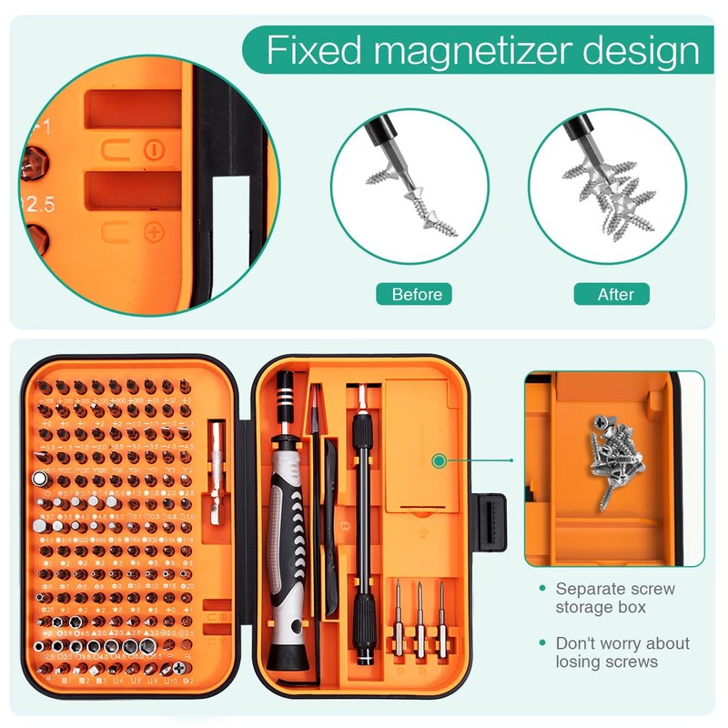 - 130 in 1 Screwdriver set: 130 in 1 precision screwdriver Kit comes with 120 precision screwdriver and other repair tools, which can meet the repair of various equipments in life