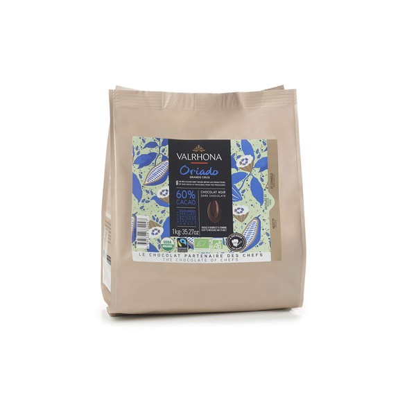- Organic and Fair Trade Certified ORIADO 60% is a Valrhona Blended Origin Grand Cru chocolate Balanced with aromas of ripe and acidic fruit 1kg bag - 2lbs 2oz