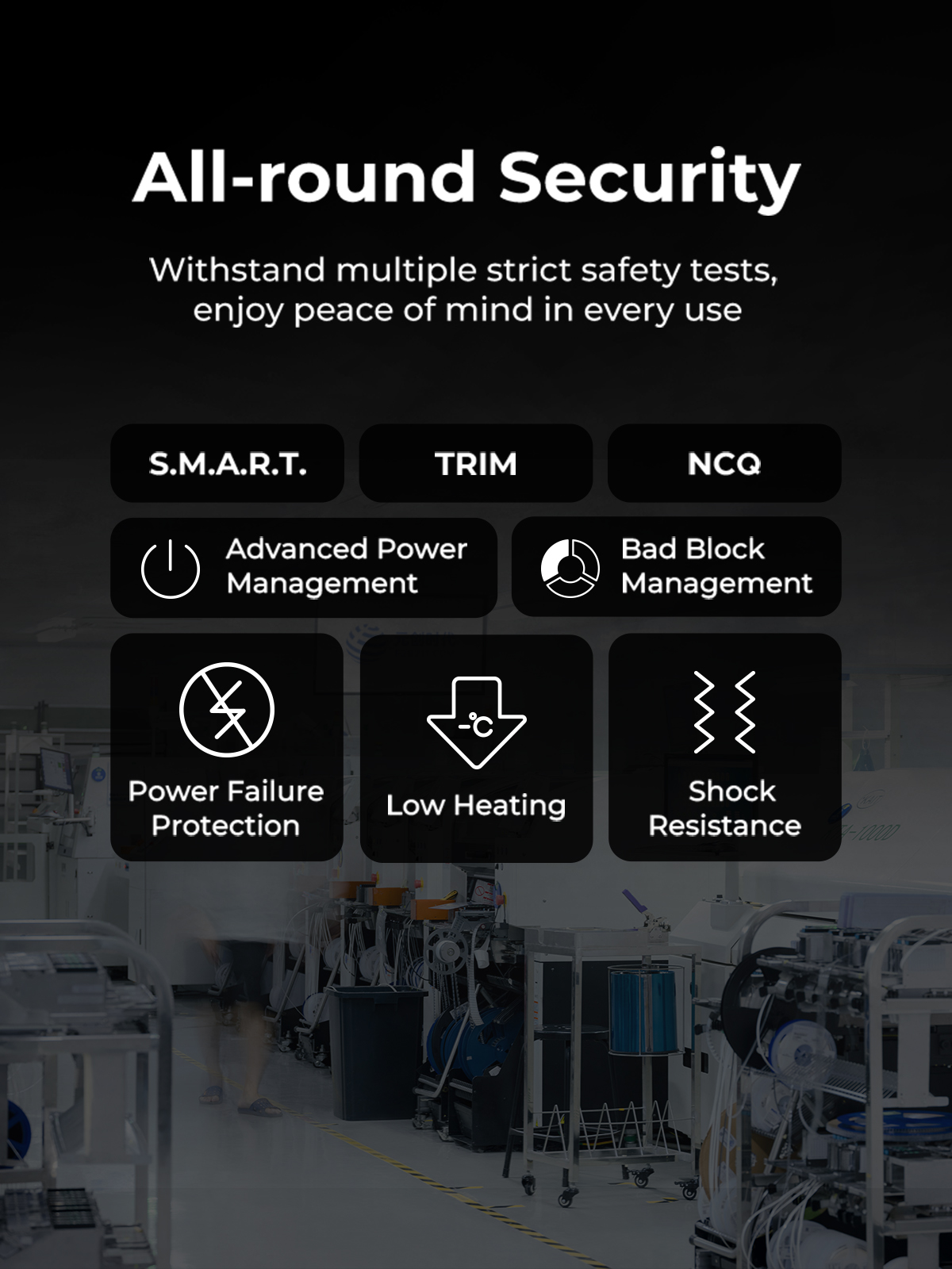 **Comprehensive smart technology - Supports advanced garbage collection, S.M.A.R.T., wear leveling, TRIM commands and power saving features. Providing outstanding solutions for performance, power efficiency and longevity.