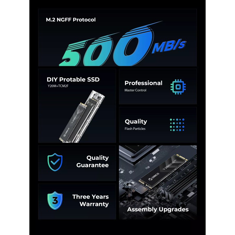 **Use ORICO SATA III 6Gb/s transmission interface. Read/write speeds up to 500/450 MB/s provide excellent transfer efficiency and reduce system uptime. Perfect for personal, DIY, gaming and commercial use.
