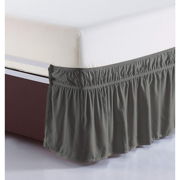 Orient Home Collection De Moocci Luxury Wrap Around Style, Elastic Bed Wrap Ruffled Bed Skirt 16inch Drop, Platform Free, 2 Sizes, 100% Polyester (Grey Queen/King)