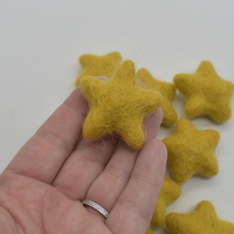 Oriental Direct based in Yorkshire 100% Wool Felt Stars - 10 Felt Stars - 3cm - Light Mustard Yellow