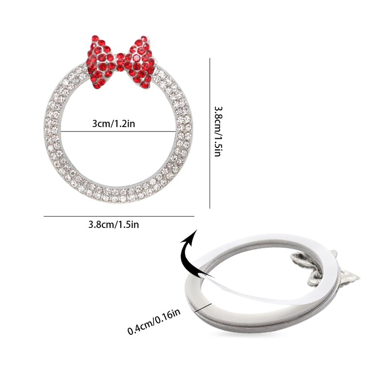 - Aesthetic Enhancements: Our decoration ring is crafted from high-quality alloy, adorned with double rows of rhinestones and cute red bow tie decorations, emitting dazzling brilliance, adding charm and elegance to your vehicle. The subtle heart embellishments enliven the overall ambiance, showcasing personality.