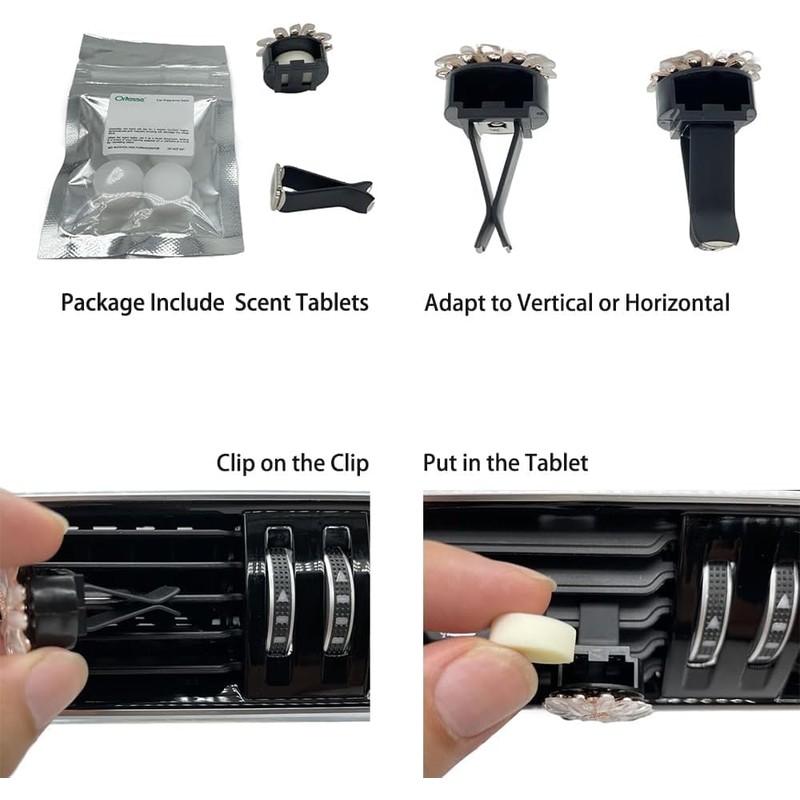 - When the scent of the freshener is gone or faded, you can directly drop your favorite essential oil or perfume into the freshener tablet in the slot so that you can use it again and again.